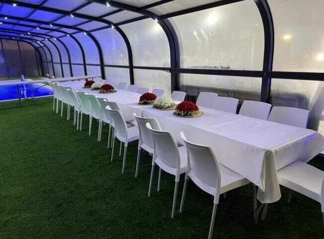 וילת הצבי הירוק, וילה מושלמת לאירועים קטנים ומסיבות בריכה כל השנה, מזמינה אתכם ליהנות ממתחם אירוח מפנק המותאם לכל סוגי האירועים במתחם המקורה ובחצר.
