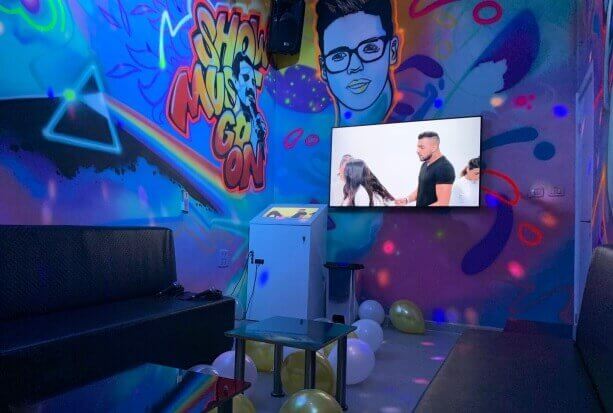 חדרי הקריוקי הפרטיים שלנו, מאובזרים במערכות הגברה משוכללות, תאורת לדים מרהיבה ומערכות קריוקי מקצועיות הכוללות גם IPAD עם מאות אלפי שירים לבחירתכם. חדרי הקריוקי הפרטיים שלנו מותאמים לאירוח מסיבות ואירועים מכל סוג, במהלכם תוכלו ליהנות מחוויית קריוקי מלהיבה וסוחפת. כמו כן, אנו מעמידים לרשותכם פתרונות אירוח והפקה הכוללים שירותי קייטרינג ואטרקציות בהתאמה אישית.