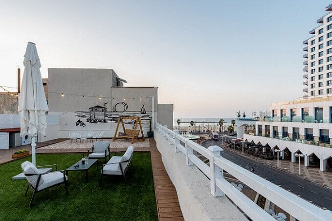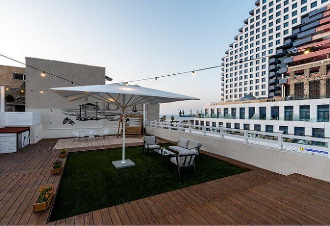 גג מדהים ברחוב הירקון 45 לאירועי בוטיק, מלא שמש ונוף ים.