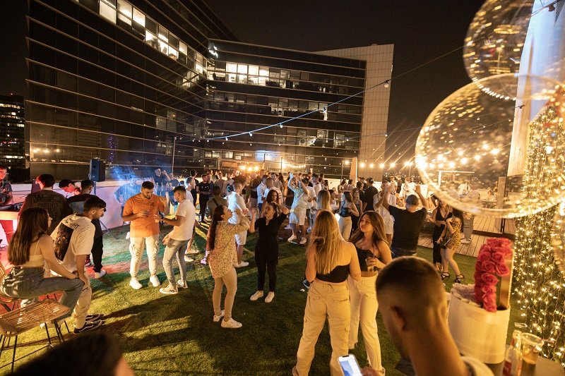 אלאמגו, גג למסיבות פרטיות בתל אביב, מזמין אתכם ליהנות מהקונספט החדש למסיבות בעיר הגדולה הכולל: מסיבות תחת כיפת השמיים ונוף אורבאני. בשטח הגג הפתוח, תוכלו לקיים את כל סוגי המסיבות הפרטיות לקהל של עד 100 משתתפים וליהנות בין היתר מעמדת DJ מקצועית, עמדת בר משקאות ועמדת בופה, כאשר כל שטח הגג מכוסה במשטח דשא סינטטי.