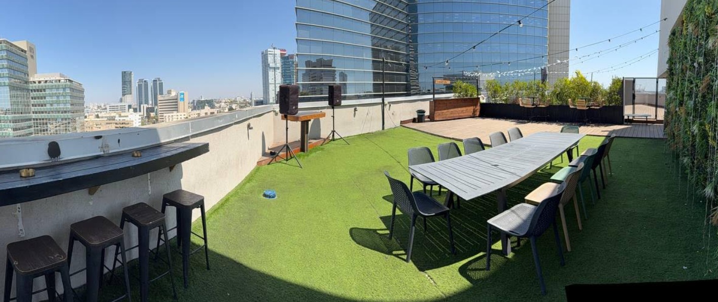 רצינו גג מיוחד , להרגיש את תל אביב מלמעלה, ולראות את גורדי השחקים מלמטה, גג לאירועים באמצע תל אביב ואפילו לא חסר מקום לחנייה, איש הפקה עם ניסיון שהיה איתנו לאורך כל האירוע באופן מושלם, קיבלנו תגובות טובות מכל החברים, ניכנס לרשימה של אחד האירועים היותר מוצלחים של החברה.