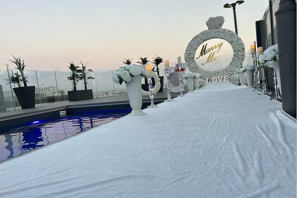 מתכננים הצעת נישואין בקרוב ומחפשים את המקום הכי מושלם בבת ים לרגע המיוחד? ברוכים הבאים לפנטהאוז לאירועים הממוקם בתוך מגדל מגורים יוקרתי בסמוך לחוף. בשטח הפנטהאוז, המשלב בתוכו קומת גג עם בריכת שחייה, תוכלו לקיים הצעות נישואין מרגשות ובלתי נשכחות במסגרת כל הפקה קונספטואלית כזו או אחרת. בנוסף, תוכלו ליהנות מקומת הפנטהאוז הכוללת סלון אירוח מודרני ומעוצב, חדרי שינה מרווחים ומתקני אירוח נוספים.
