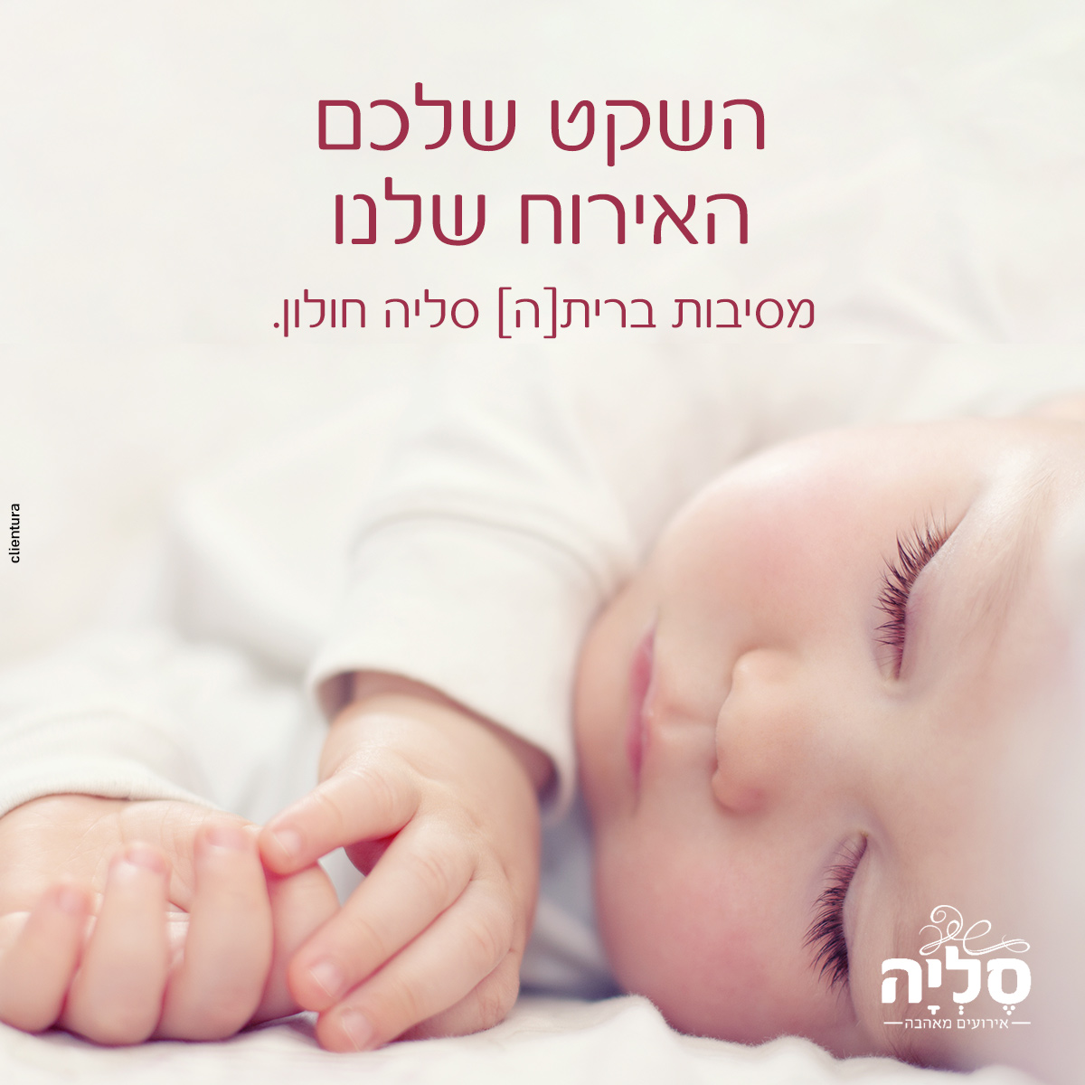 תפריט אירוח כשר בהשראת המטבח הישראלי - ים תיכוני, פתרונות אירוח לאירועים עד 80, 300 ו-350 משתתפים ואווירת אירוח כיפית ומהנה, כל אלו ועוד ממתינים גם לאירוע ברית/ה שלכם ב-סליה אירועים. אצלנו, תוכלו לקיים אירועי וטקסי ברית/ה גם במסגרת אירועי צהרים וגם במסגרת אירועי ערב ובשני המקרים ליהנות ממתחם בוטיק מודרני ומעוצב המשלב בתוכו מערכות אירוח בעיצוב אלגנטי לצד מערכות הגברה ותאורה חדישות. על מנת לאפשר לכם להתרכז רק בחוויית האירוח, צוות הניהול שלנו ידאג לסדר ולארגן עבורכם את כל מה שצריך לקראת האירוע.