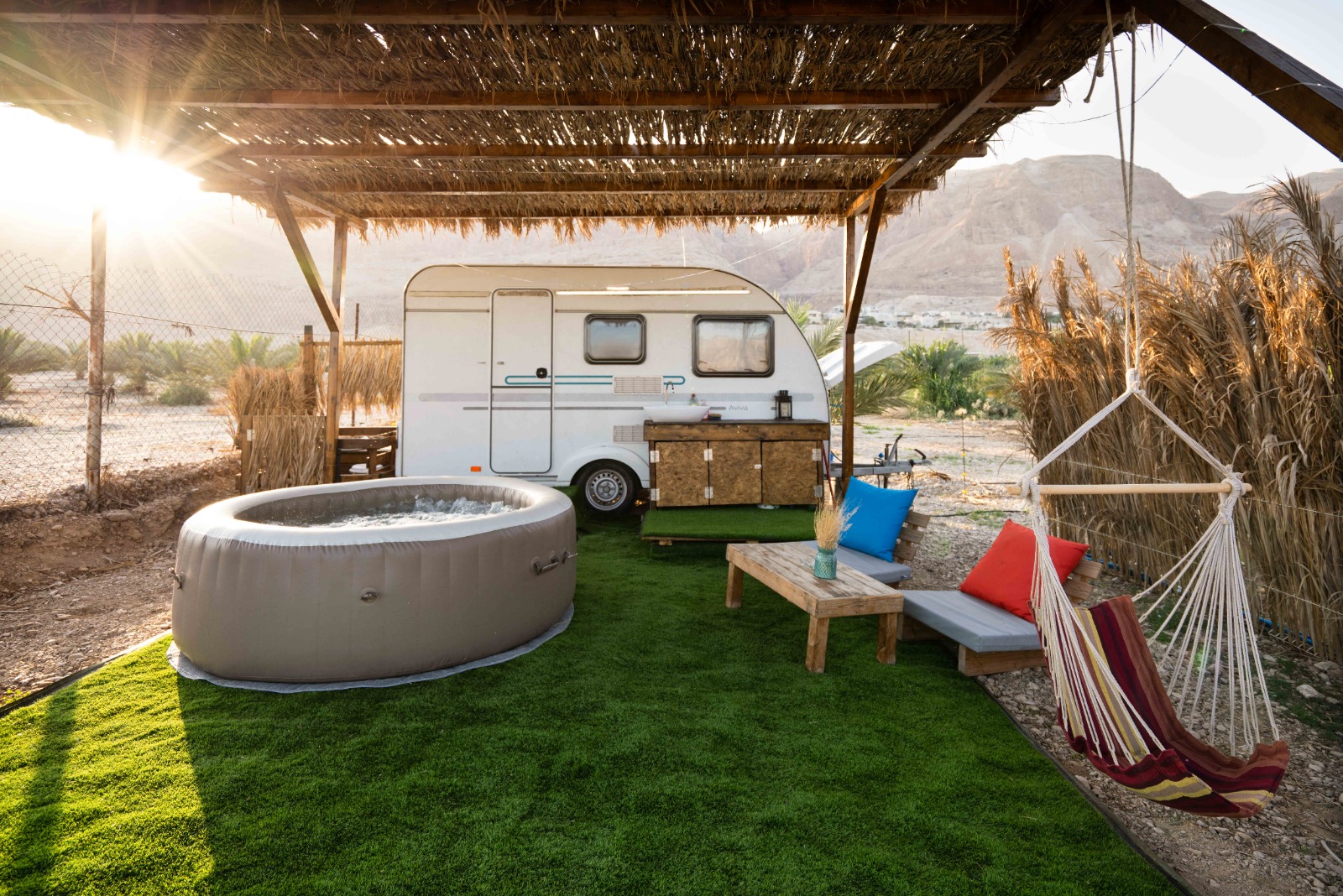 במתחם אסקייפ ים המלח, תוכלו לקיים מגוון רחב של אירועים אינטימיים ומיוחדים, ממפגשים משפחתיים וחברתיים, דרך מסיבות רווקים/רווקות ועד לערבי גיבוש לעובדי חברות ועסקים. כמו כן, תוכלו ליהנות מפתרונות אירוח + לינה, ללילות קסומים במדבר, בצמד קרוואנים מאובזרים, שכל אחד מהם מיועד ללינת זוג.