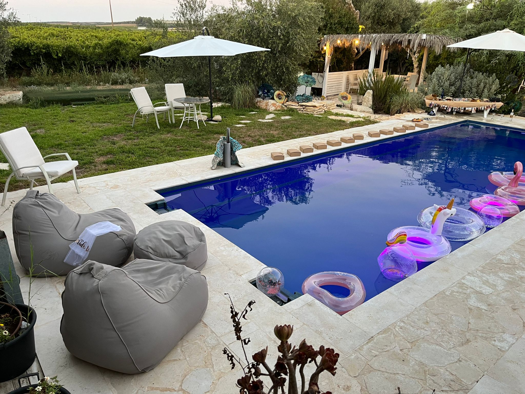 אצלנו ב-מול השדות, תוכלו לקיים אירועים מרעננים במיוחד בתוך מתחם בריכה ענק המותאם לאירועי קיץ מכל סוג: מסיבות בר/בת מצווה, אירועי ומסיבות חתונה, אירועי חברות, ימי גיבוש וכדומה. במתחם, עומדים לרשותכם מתקני אירוח מפנקים, ביניהם: מערכות הגברה ותאורה, פינות ישיבה מוצלות (כולל הצללה טבעית), מיטות שיזוף, פינת מנגל מאובזרת ומטבח חיצוני מושקע. כמו כן, תוכלו ליהנות משירותי קייטרינג ובר משקאות בהתאמה אישית לאופי וסוג האירוע. בנוסף לכל אלו, תוכלו ליהנות משירותיו של צוות אירוח מקצועי המלווה אתכם לאורך כל הדרך. לפרטים נוספים אנחנו כאן בשבילכם.