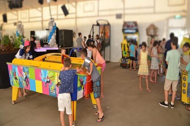 בשטח המתחם, עומד לרשותכם אזור אירוח מקורה ומעוצב המתפקד כמועדון לאירועים ומסיבות. בשטח המועדון, תוכלו ליהנות ממערכת מולטימדיה חדשנית, פינות ישיבה מפנקת, דוכני מזון וברים מתוקים, עמדת משחקי שולחן ואטרקציות נוספות בהתאמה אישית.