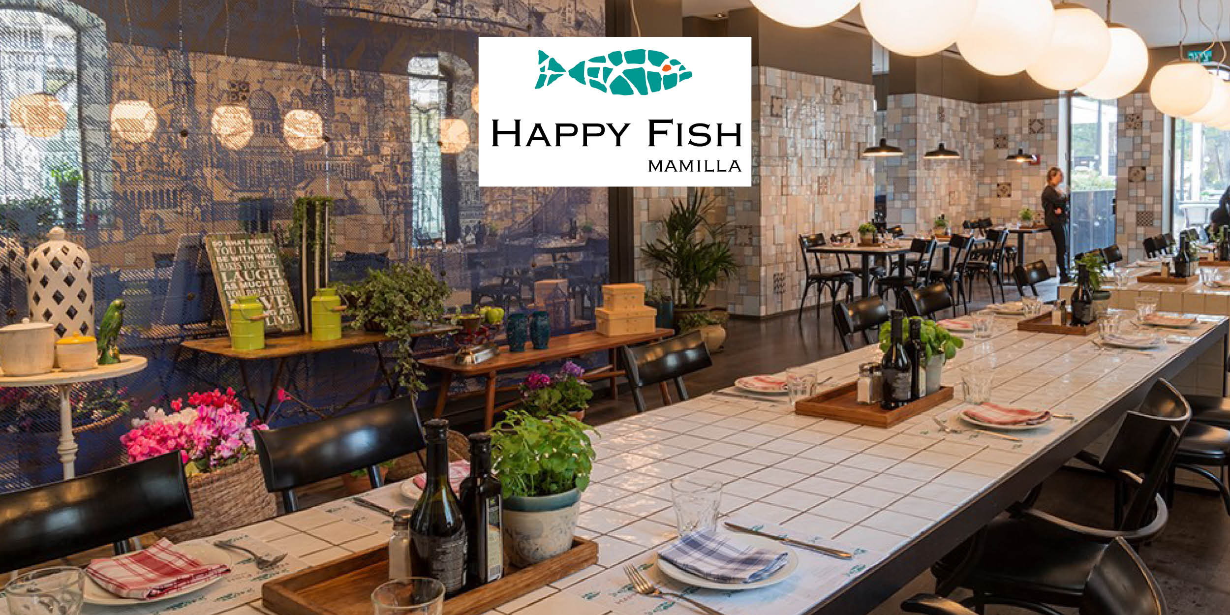 במעלה המדרגות של מדרחוב ממילא בירושלים ובתוך חלל מעוצב כבוסתן קסום תחת כיפת השמיים, ממתינה גם לכם חוויית האירוח של ה- Happy fish, מסעדת שף לאירועים במלון ממליא ירושלים. בשטח המסעדה, תוכלו לקיים את כל סוגי האירועים עד 200 משתתפים ולהבטיח לעצמכם חוויית אירוח קולינרית ברמה הגבוהה ביותר.