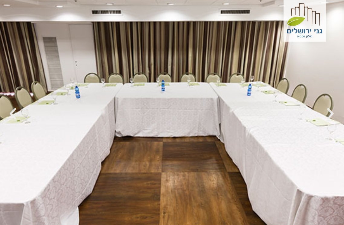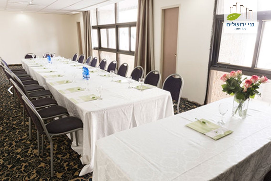גני ירושלים הוא מלון אידיאלי לאירוח כנסים מקצועיים, אירועים עסקיים וישיבות הנהלה בירושלים. המלון ממוקם במרחק הליכה קצר מהתחנה המרכזית ותחנות הרכבת הקלה והוא משלב בתוכו היצע מרשים של אולמות לאירועים וכנסים בסדרי גודל שונים המיועדים לקהל של החל מ-40 ועד 400 איש בהתאמה.