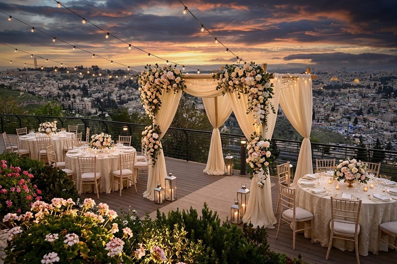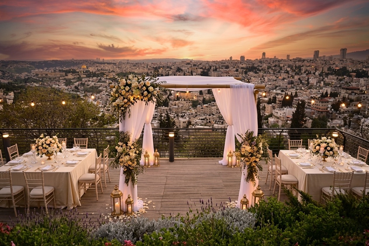 פעימת הלב של ירושלים: אירוע על פסגת הר הצופים - מול הנוף המהפנט של העיר העתיקה וחומותיה, שוכן מתחם מדלן, פנינה ירושלמית המשלבת קודש וחול בנקודה הגבוהה בעיר. כאן, בין שמיים לארץ, כל חתונה, בר מצווה או עלייה לתורה מקבלים משמעות רוחנית עמוקה. האוויר הצלול ותפאורת קדומים עוצרת נשימה יוצרים אווירה שאין שנייה לה. אנו מציעים חוויה קולינרית עילית עם תפריט שף בהתאמה אישית בכשרות למהדרין, במתחם המיועד ל-50 עד 400 מוזמנים. ללא הגבלות מוזיקה המפריעות לשמחה, האירוע שלכם הופך לזיכרון עוצמתי שייחרט בלב האורחים לשנים ארוכות.