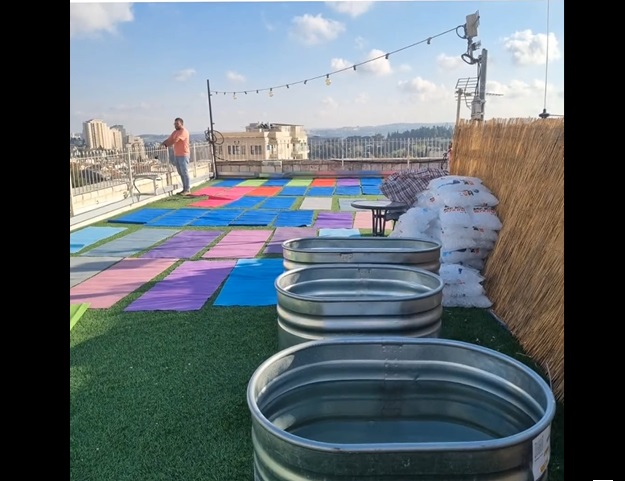 הגג משתרע על פני שטח כולל של 150 מ"ר והוא משקיף לנוף הקסום של מרכז ירושלים, כנסת ישראל וגן הוורדים. האירוח בשטח הגג הפתוח תחת כיפת השמיים, מותאם לכל סוגי האירועים הפרטיים והעסקיים והוא מומלץ בעיקר לאירועי ערב החל מהשעה 5 ועד 23:00. לרשותכם, מערכות ציוד שונות לצרכי האירוח, לרבות, כסאות, שולחנות, פלטות לחימום מנות אוכל, מיחמי מים, בידורית ומיקרופון.