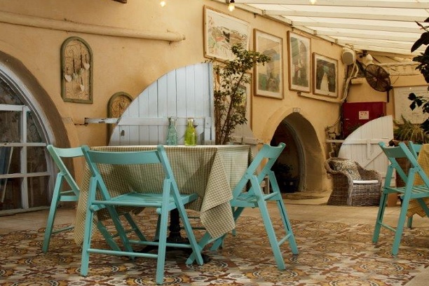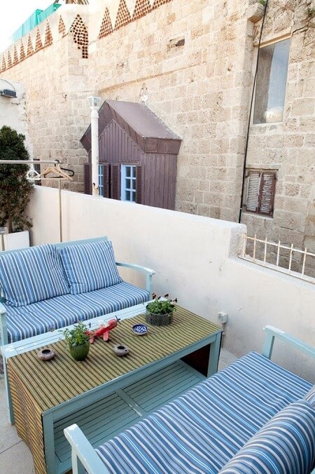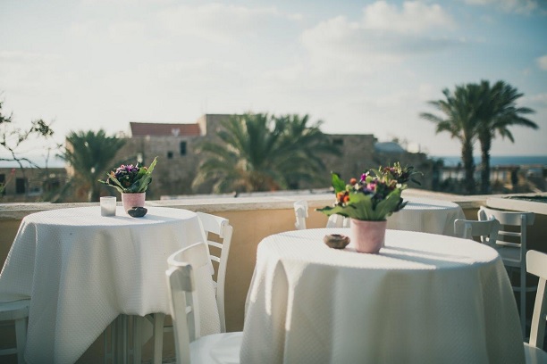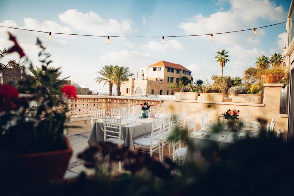 בסטמאות יפו העתיקה. במבנה, אזור אירוח ייעודי הממוקם על גג המבנה ובו ניתן לקיים