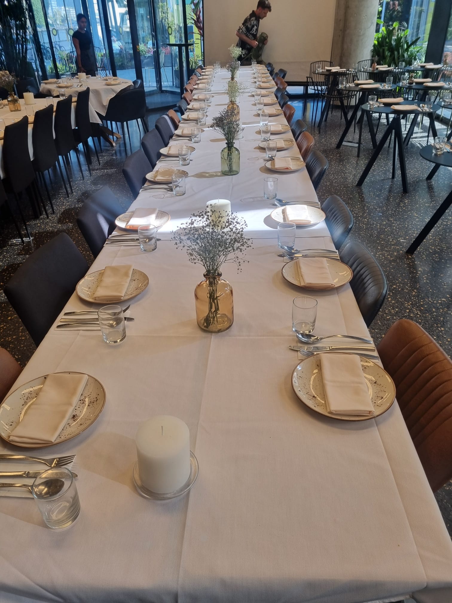 בשטח המסעדה תוכלו לקיים את כל סוגי האירועים העסקיים ואירועי חברות לקהל של החל מ-20 עד 120 משתתפים וליהנות בין היתר מפתרונות אירוח והפקה בהתאמה אישית לאופי וסוג האירוע. בנוסף, תוכלו ליהנות מחלל אירוח מודרני ומעוצב הצופה לפיאצה פסטורלית, תפריטי אירוח מושקעים במיוחד, מערכת הגברה חדשנית, בר ישיבה מעוצב ומערכות ישיבה מפנקות. חווית האירוח אצלנו, משלבת בין תפריטי אירוח מוקפדים ליחס אישי לכל אורח/ת מצד הצוות המקצועי והמיומן שלנו.