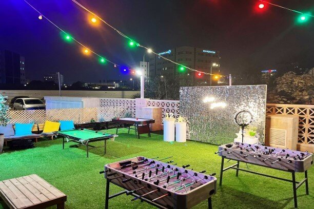 המועדון כולל אולם גדול ומופאר ומתחם מבוגרים יוקרתי המשקיף לאולם, מסך לד ענק המשמש להקרנת תמונות ומצגות, במה, חדר VIP לחוגגת הנמצא בגלריית המועדון. החדר כולל טלוויזית אל.סי.די, XBOX , שתיה והמון חטיפים.