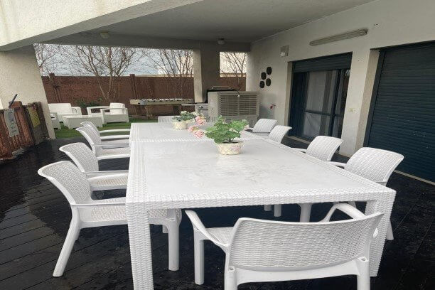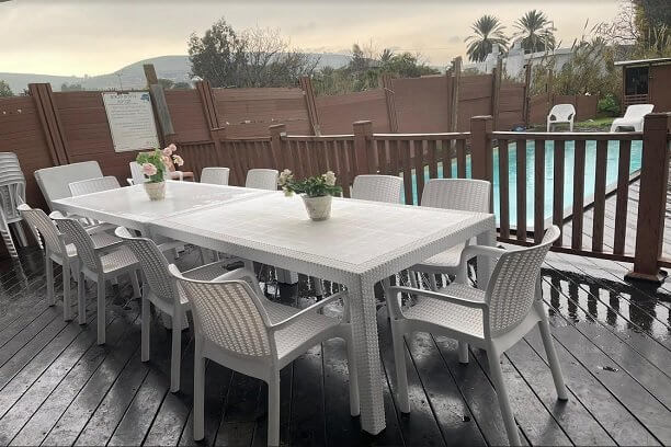 במסגרת אירועי שבת חתן לחתונה במתחם הנופש שלנו, תוכלו ליהנות ממגוון רחב של מתקני אירוח מפנקים גם בכל אחת מהסוויטות המרווחות שלנו וגם בשטח החצר הענקית הכוללת בתוכה בין היתר : בריכת שחייה עם שעות נפרדות לנשים וגברים, שולחנות משחק, מתקני משחק לילדים, פינות ישיבה מוצלות ועוד. בנוסף, תוכלו ליהנות מחדר אוכל משותף לסעודות השבת ומאפשרות לקיום תפילות השבת במתחם (קיימים 2 ספרי תורה בבעלות המתחם) או באחד מבתי הכנסת בשטח המושבה במרחק הליכה קצר.