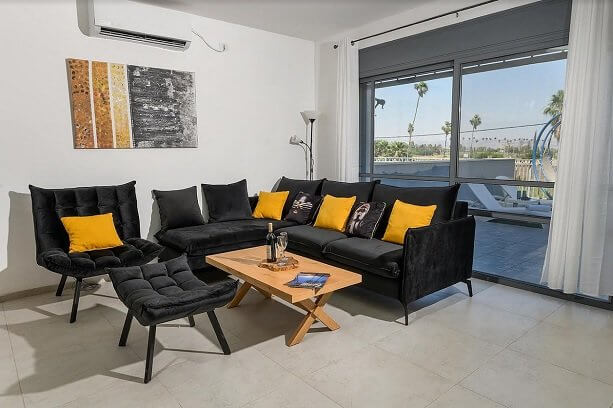 במתחם? 5 חדרי שינה, סלון גדול מאוד, פינת אוכל, פינת ישיבה, מזגנים