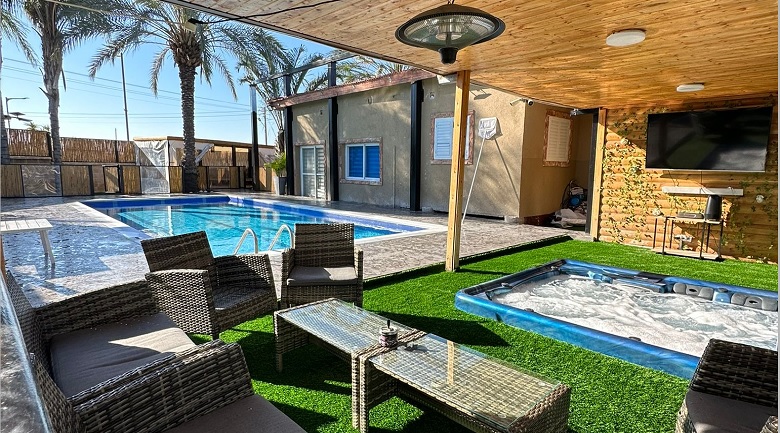 חוגגים אירוע בקרוב וחולמים על חוויית אירוח מרעננת במיוחד? אצלנו ב-אננדה, וילה יוקרתית לאירועים עם בריכה מקורה ומחוממת באזור השפלה, תוכלו לקיים אירועי חצר יוקרתיים באווירה כפרית ומפנקת. במתחם, תוכלו לקיים אירועי ישיבה עד 450 איש במתחם הדשא הענקי המשלב בתוכו פרגולה מעוצבת ומתחם בריכה, מתקן ג'קוזי ספא, עמדת מנגל מקצועית ובר ישיבה חיצוני על שפת הבריכה עם מכורת קרח. כמו כן, תוכלו ליהנות ממטבח מאובזר וממתקני אירוח נוספים המאפשרים לכם לקיים אירועים מכל סוג סביב שפת הבריכה באווירה כפרית ואלגנטית. כמו כן, ניתן ליהנות מחבילות אירוח + לינה באחד מחדרי השינה הענקיים של הוילה.