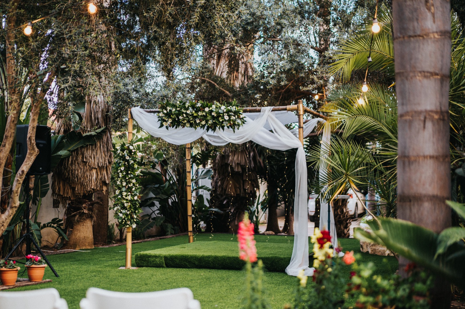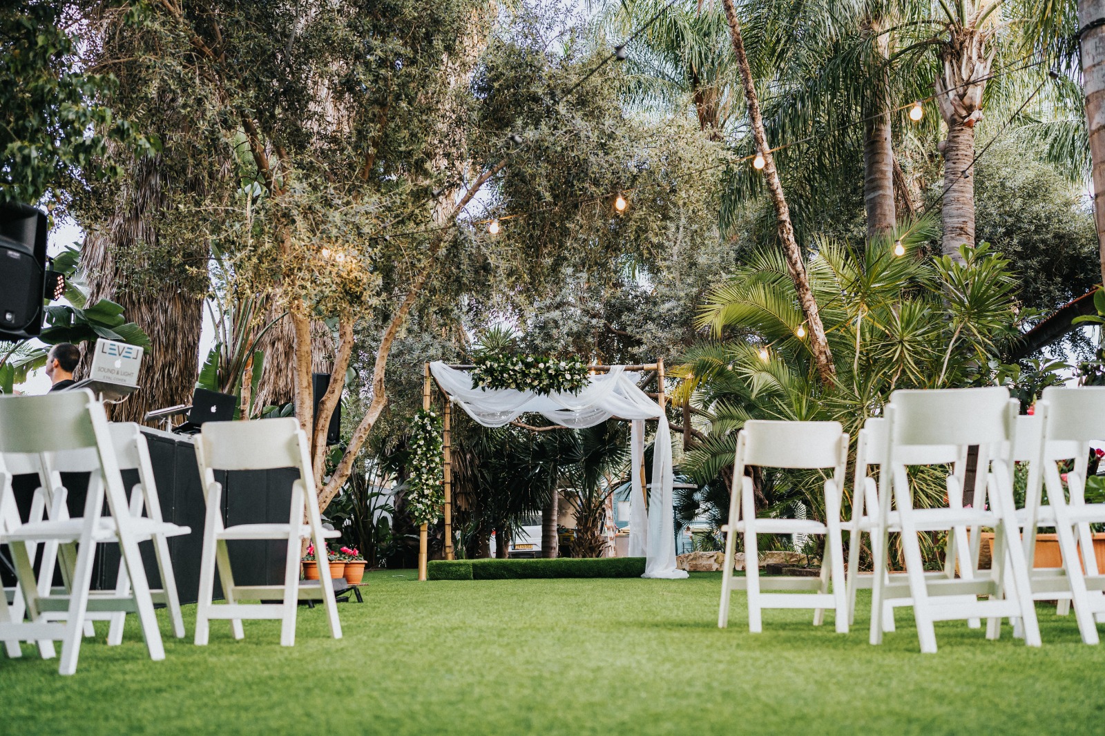חופה קסומה בין עצים בוגרים וגן ירוק 🌳