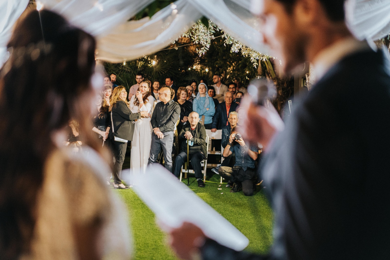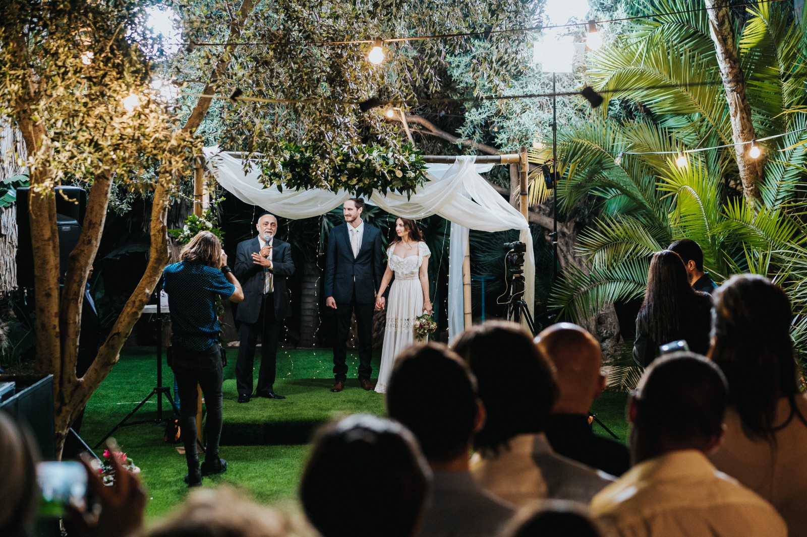 חתונה קטנה עם חופה בגינה מול העצים - חתונה בוילה סנדלר היא חוויה אינטימית ומרגשת, שבה כל פרט מתחבר לרומנטיקה של הרגע. במרכז הגן ניצבים עצים בוגרים, פרחים וצמחייה עשירה היוצרים תפאורה טבעית ומלאת קסם. כאן, תחת שמיים פתוחים ובצל הירוק, נערכת החופה – רגע טהור ומלא משמעות, שבו בני הזוג מוקפים באהבה ובאורחים הקרובים ביותר אליהם.